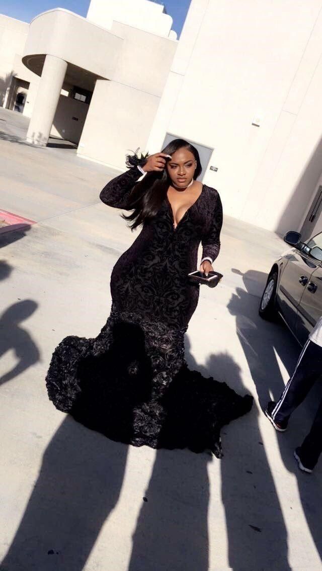 Plus Size Black Prom Dress Mermaid V black bodycon prom dress