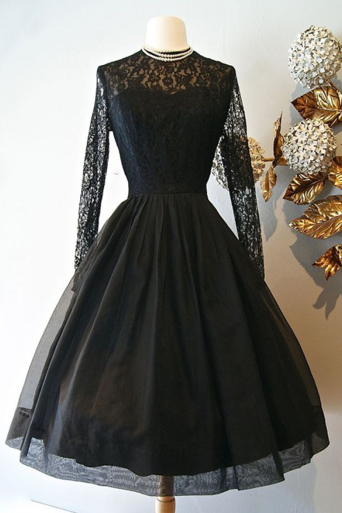 A-Line Jewel Knee-Length Long Sleeves black knee length one piece
