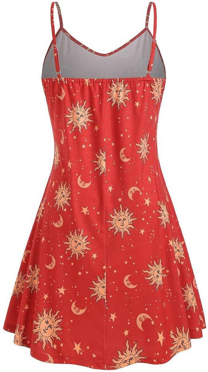Yousity Women's Spaghetti Strap Sexy V red tank top dress