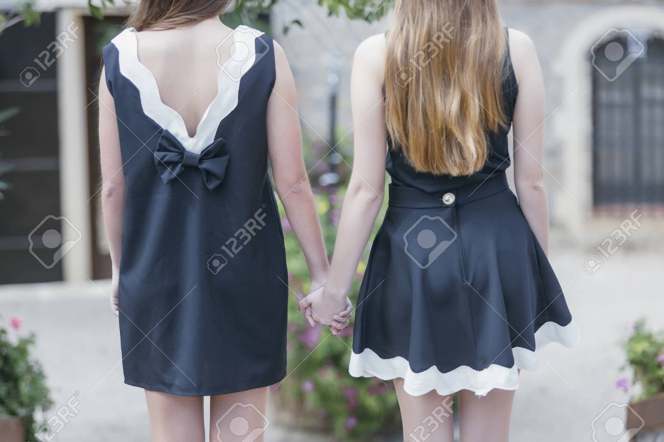 Back View Of Two Young Women In Stylish stylish black dresses
