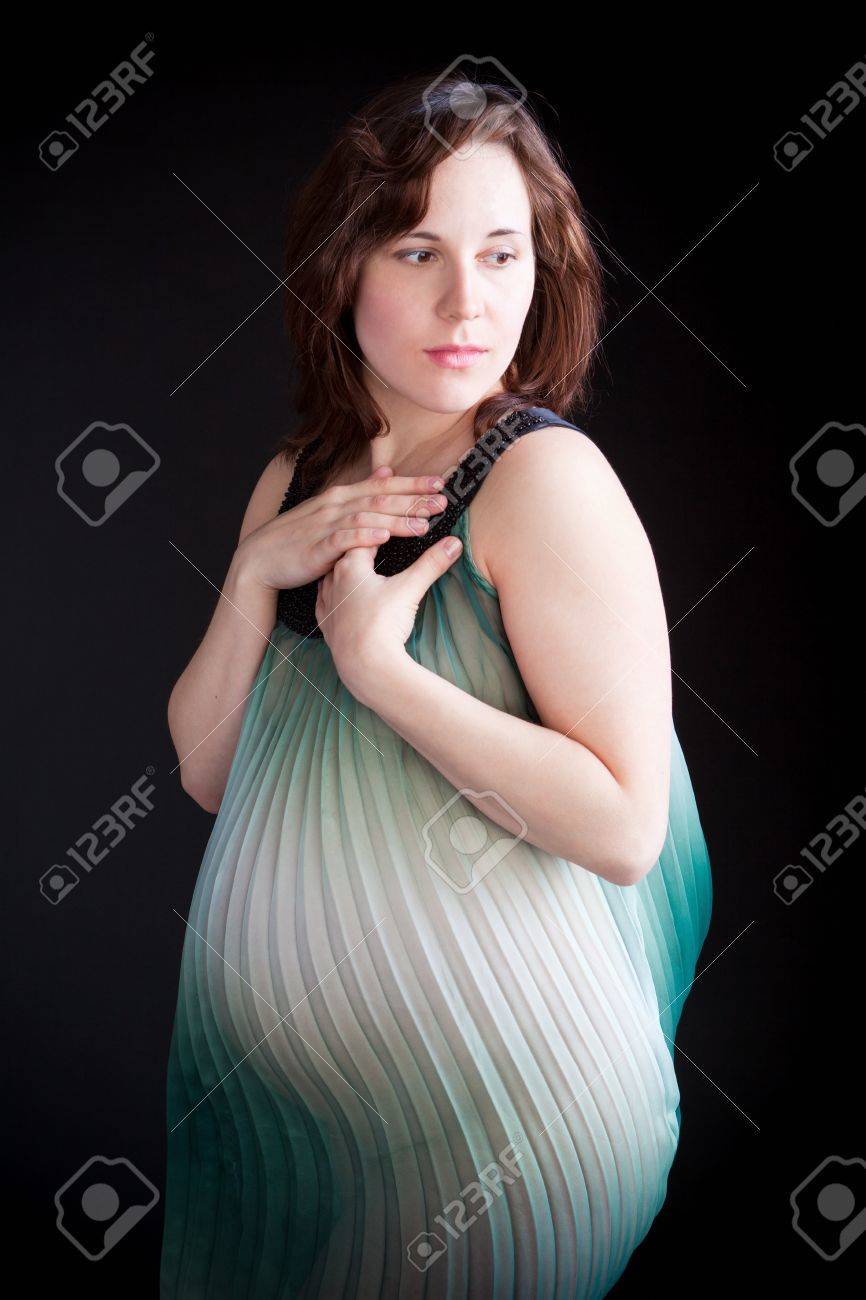 Nude Lady With Big Belly In A transparent sundress