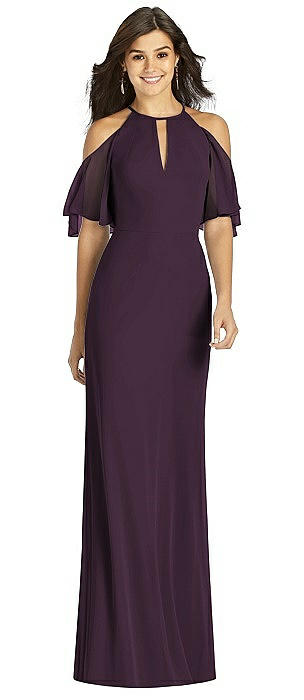 Ruffle Cold-Shoulder Mermaid Maxi Dress sienna sky wrap dress