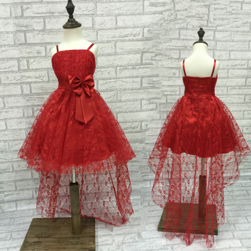 Red Lace Flower Girl Dress 2016 New Hot red lace flower girl dress