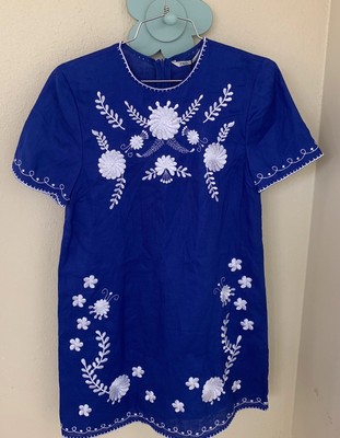 NWT Zara Embroidered Linen Dress Blue zara blue and white dress