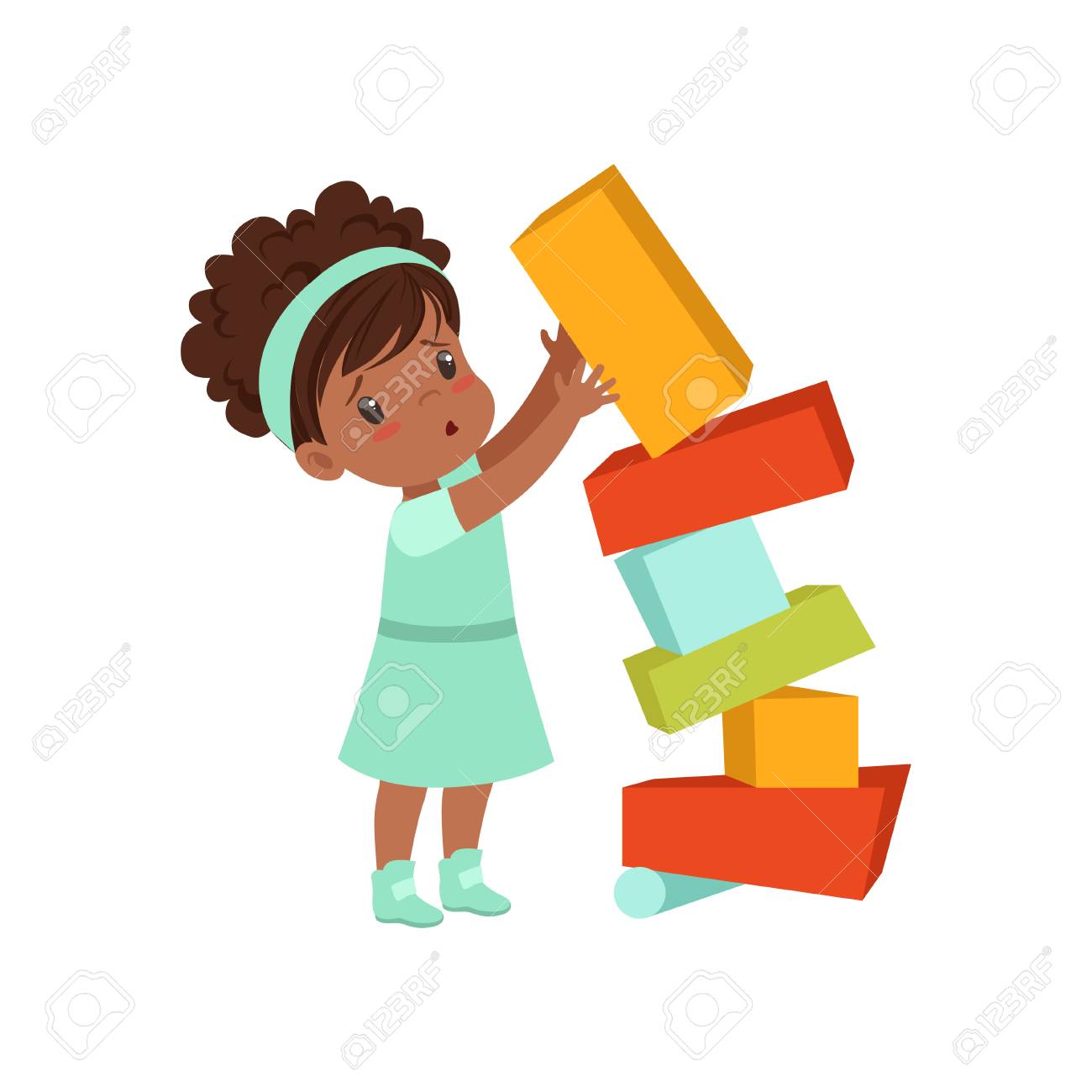 Cute African American Girl Playing With american girl blocks
