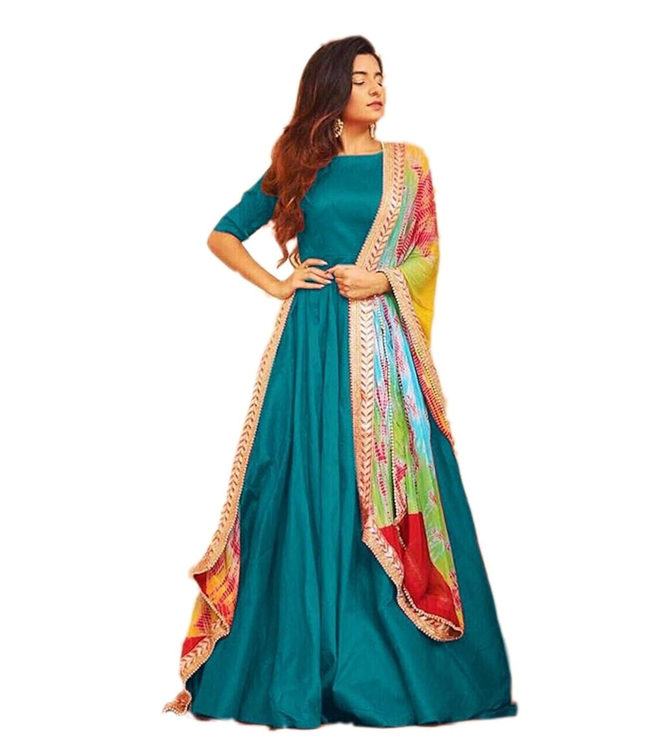 tafeta silk firozi color Stitched firozi colour gown