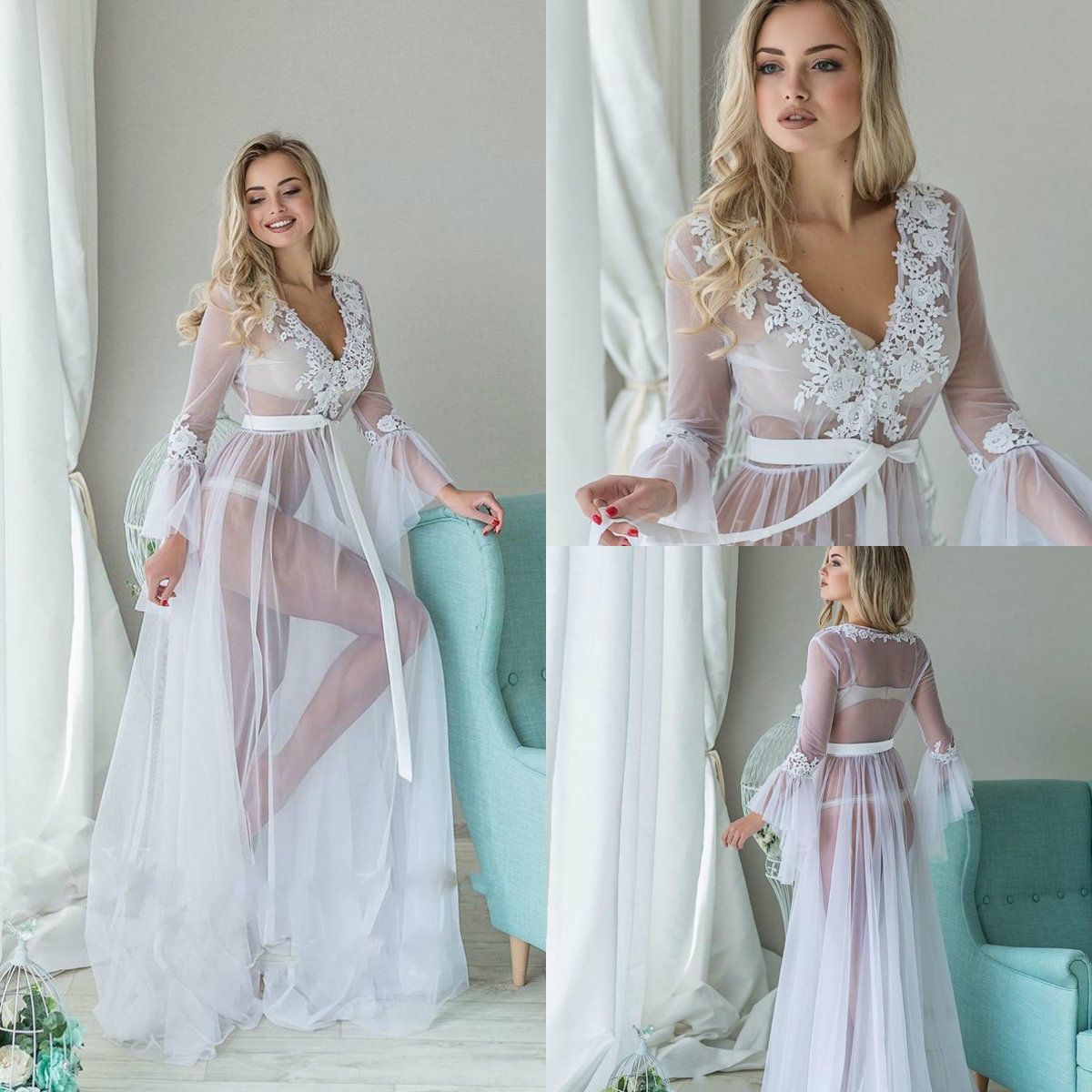 Sheer Lingerie White Lace Bridal bridal lace dressing gown