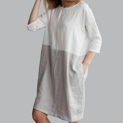 AU Baggy Womens Casual Short Sleeve linen ladies dresses