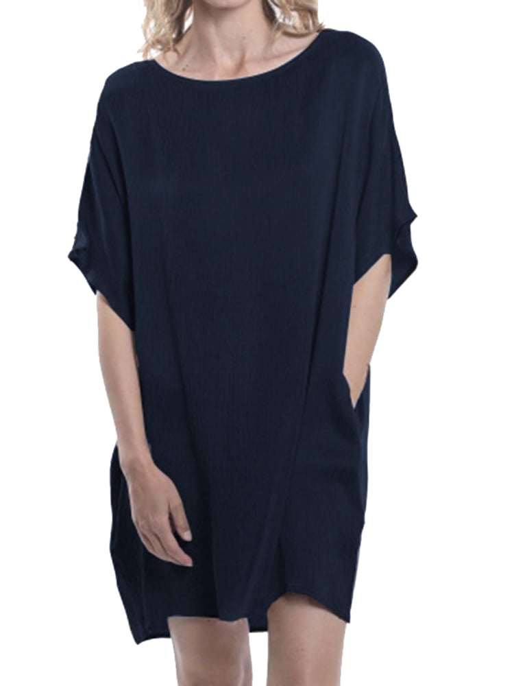 ZANZEA S-5XL Womens Round Neck Half vintage dress with pockets