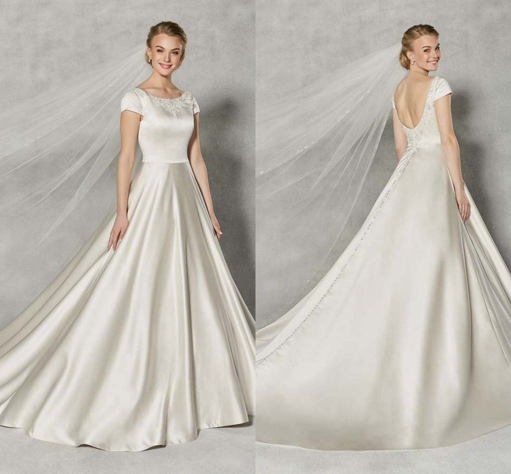 Discount Classic Scoop Neck Cap Sleeve all satin wedding dress