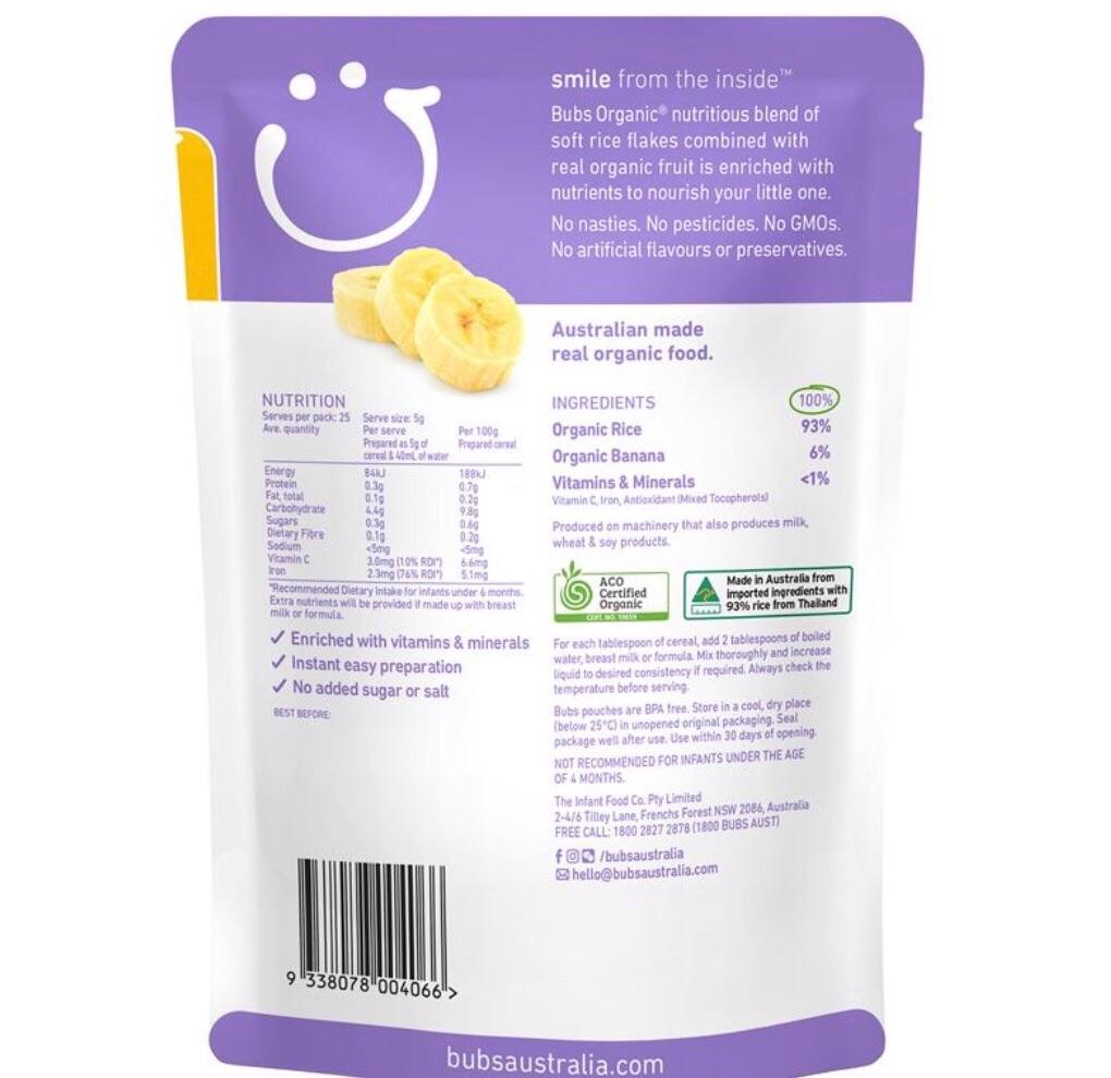 Organic Bubs baby Ban Rice Cereal 125g bubs baby food