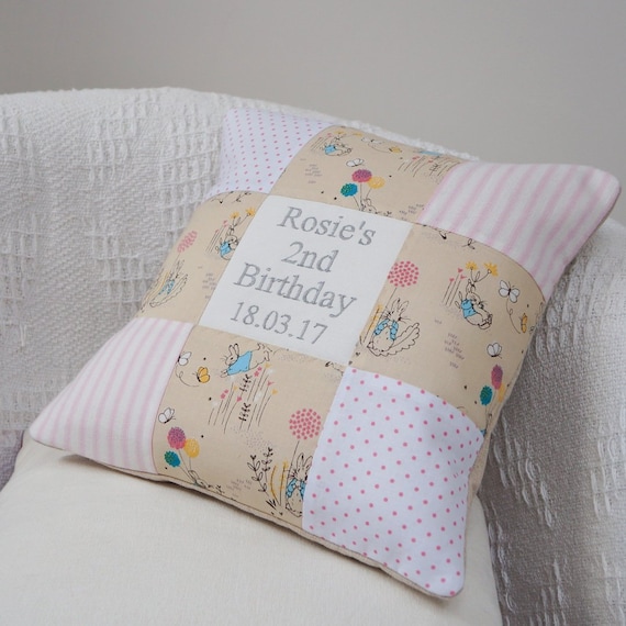 Peter Rabbit© 1st Birthday Cushion Pink peter rabbit 1st birthday gifts