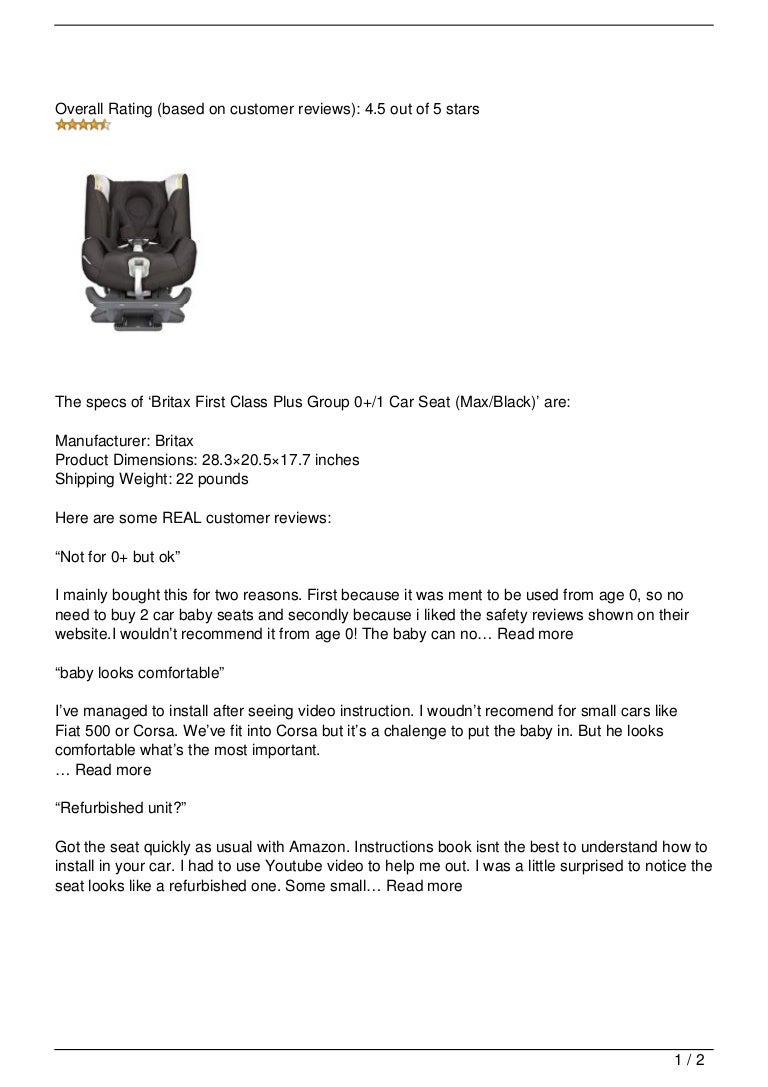 Britax First Class Plus Group 0+/1 Car fitting britax first class plus