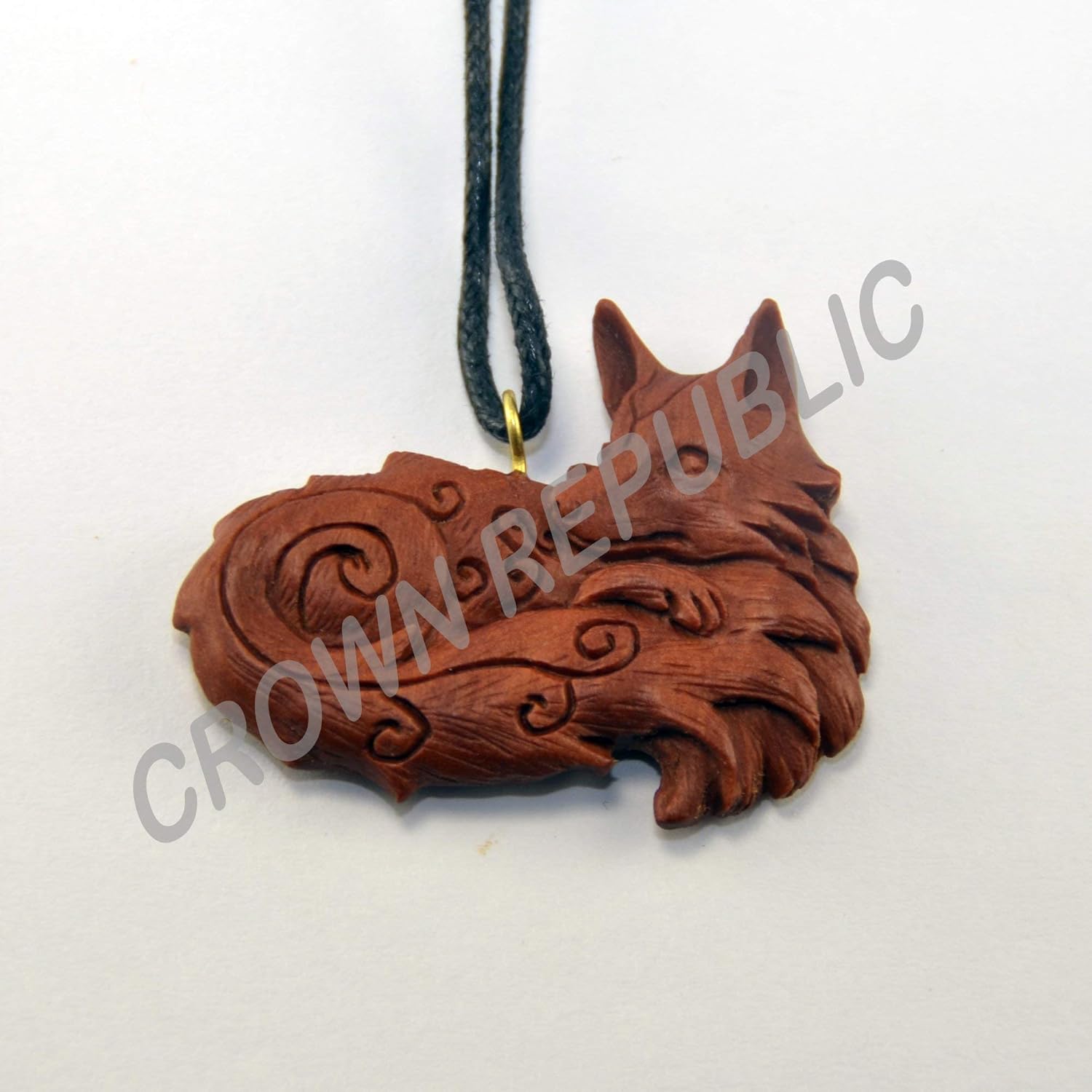 Hand Carved Wooden Necklace Pendant carved wooden fox