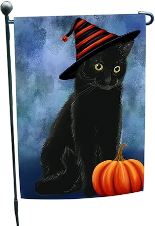 Pumpkin Garden Flag cat in witch hat