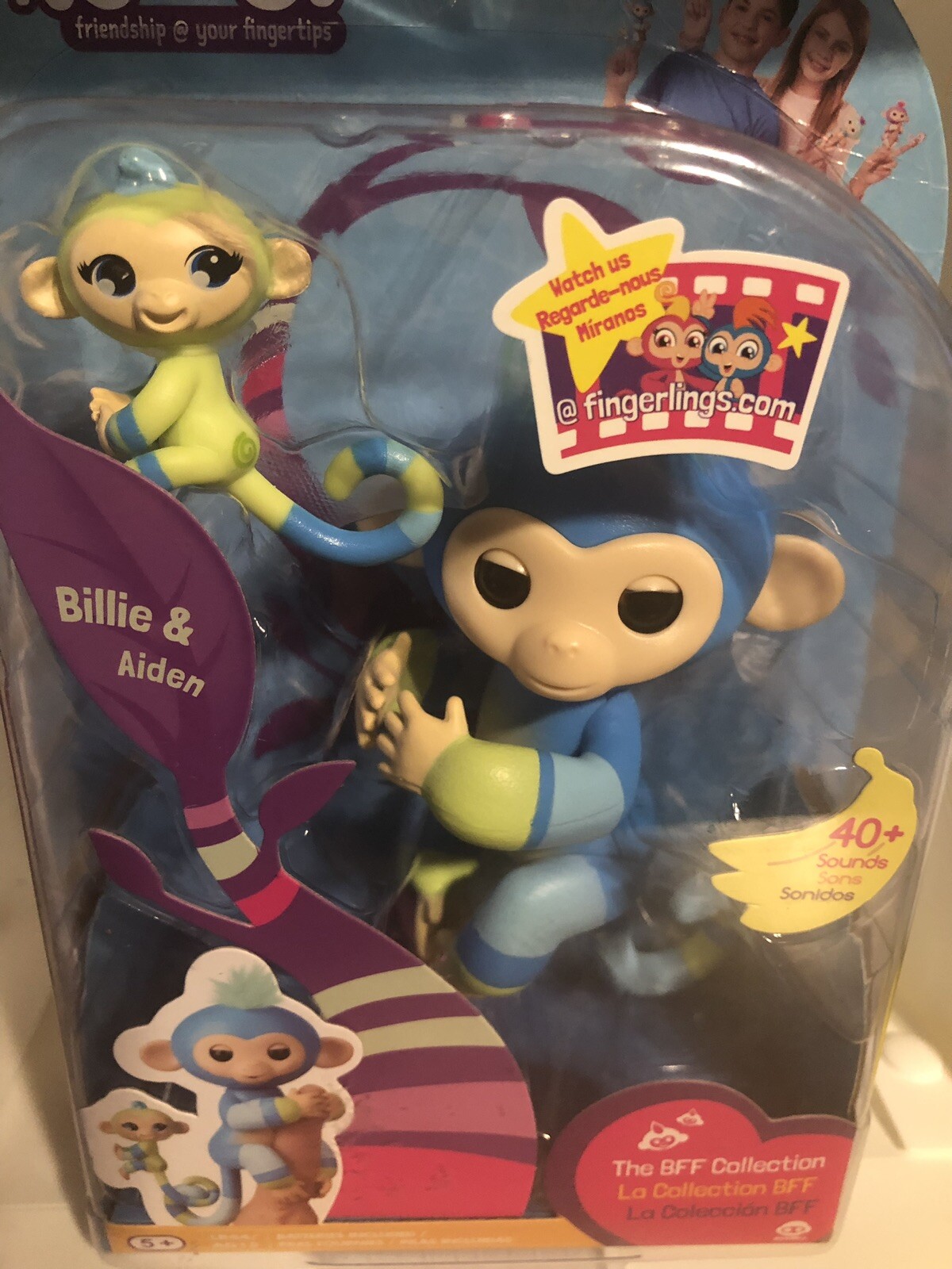 Billie \u0026 Aiden Blue-Green 3541 WowWee fingerlings baby monkey and mini bff