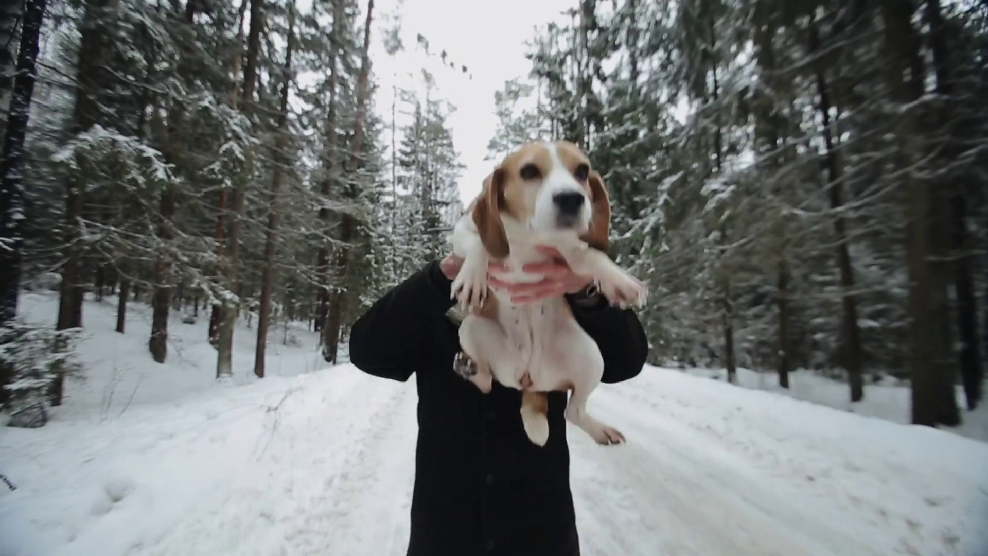 Beagle dog walking with his master. Man beagle throwing up