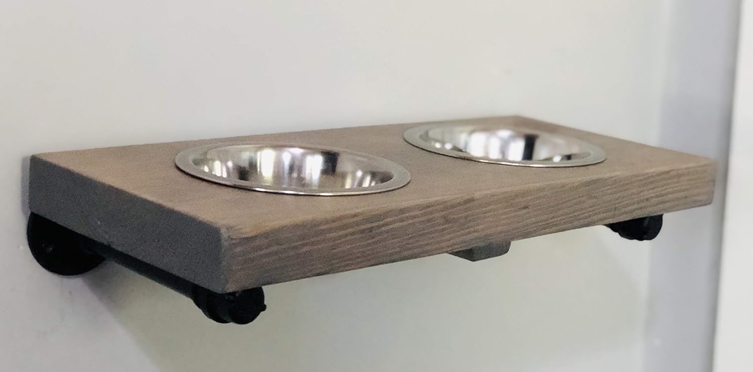 Small 2 Bowl Floating Wood Shelf floating dog bowl