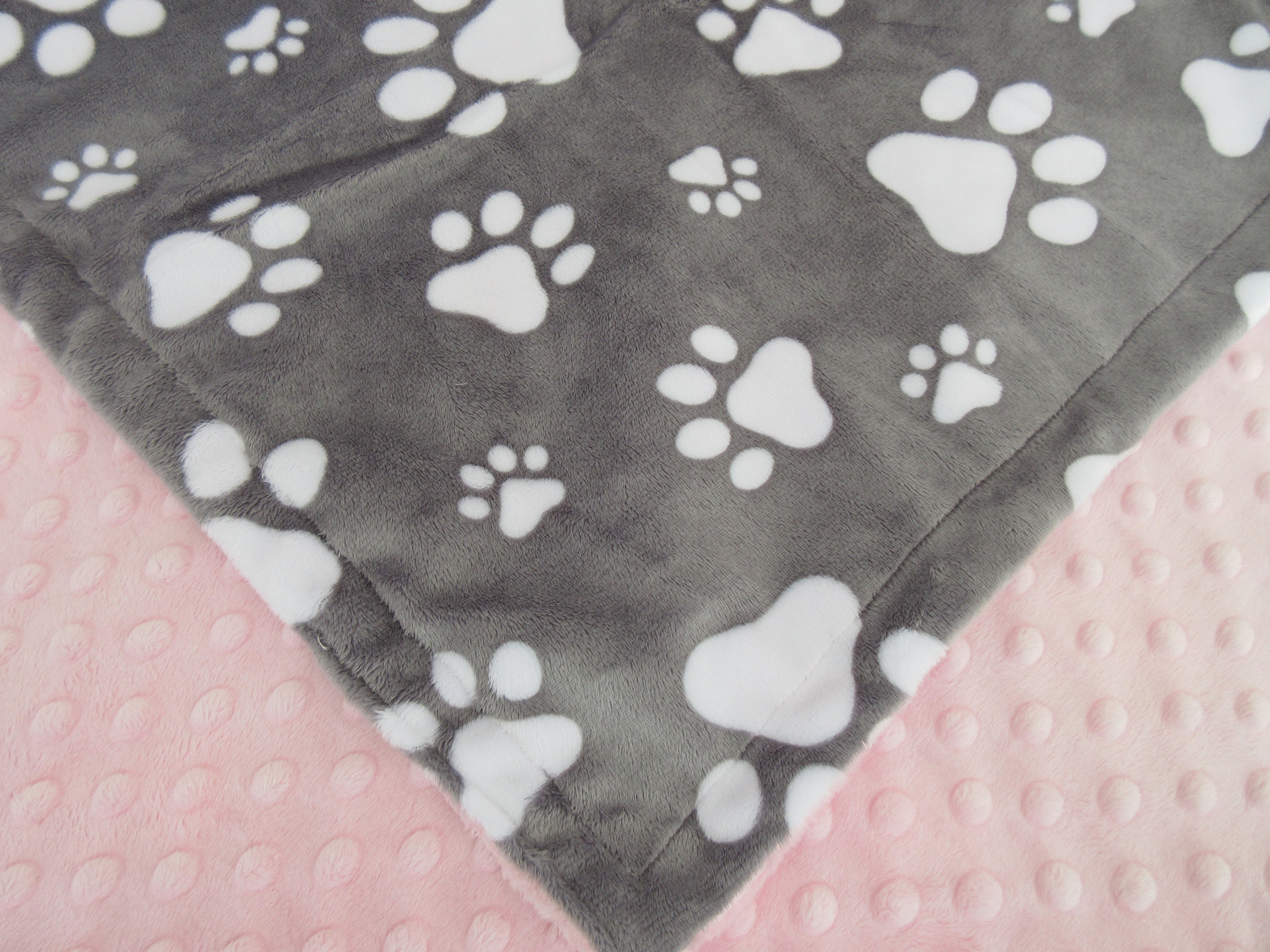 Pink and Gray Paw Print Dog Blanket pink dog blanket