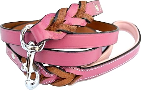 Pink Leather Braided Dog Leash soft touch collars amazon