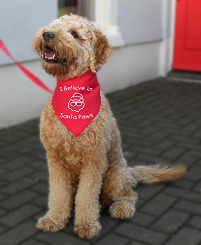 I BELIEVE IN SANTA PAWS Christmas Dog bandana on dog's neck