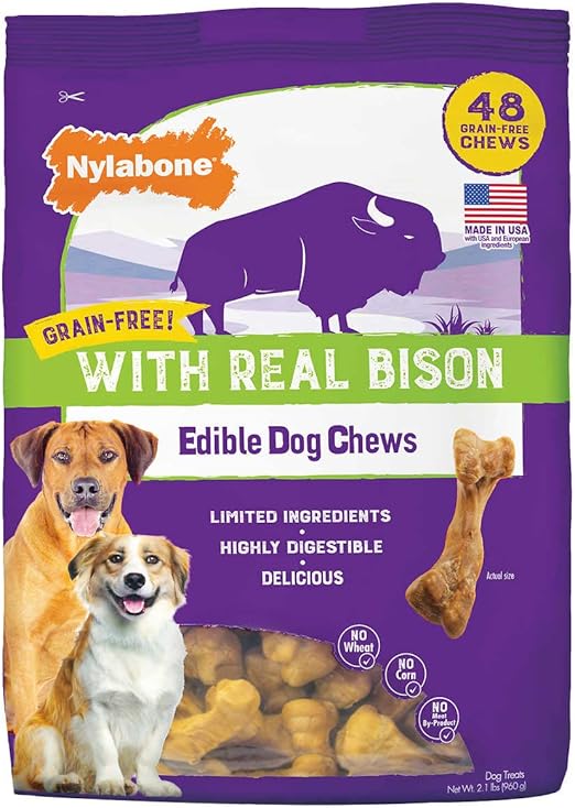 Real Bison Edible Dog Chews 48-Count grain free dog chews