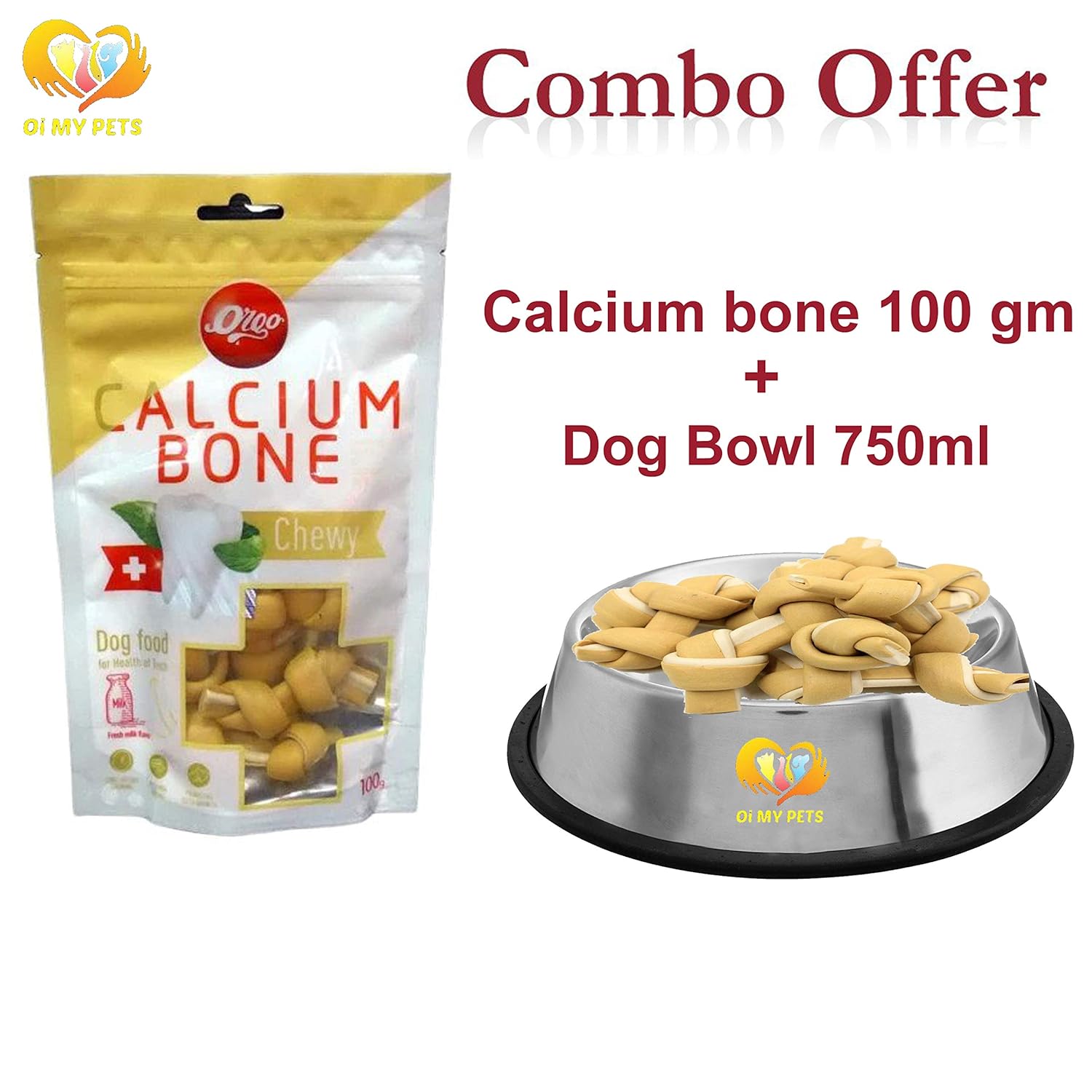 Orgo Calcium Bone Chewy Dog Food 100 gm chewy dog bowls