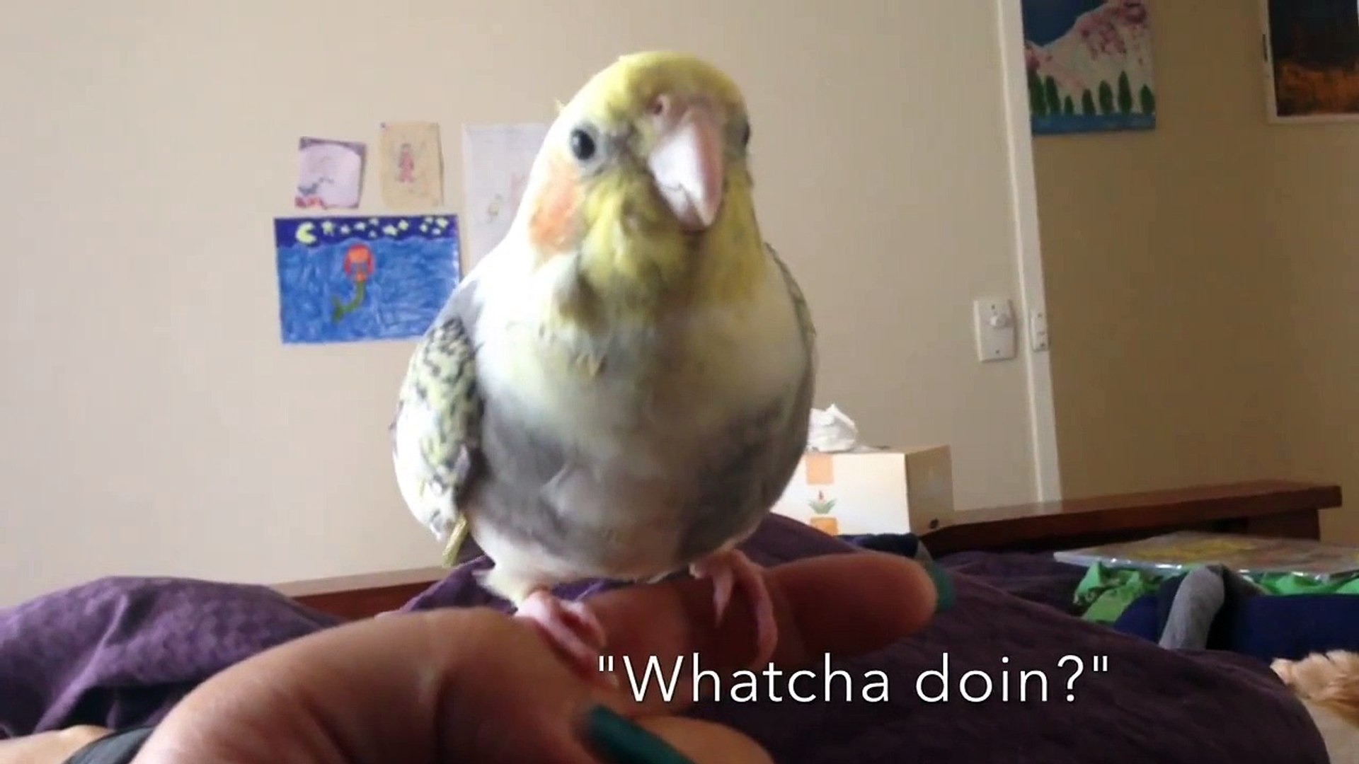 Baby Spyro the cockatiel practicing cockatiel whistling