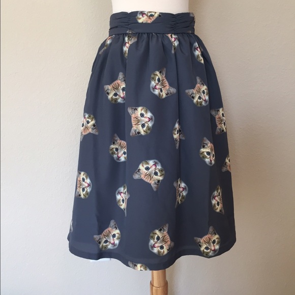 Cat Print A Line Skirt | Poshmark modcloth cat skirt