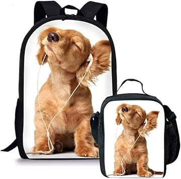 Cute Dog Print Backpack with Lunch Bag cute dog backpack