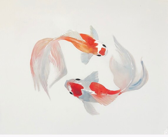 Watercolor Goldfish Print Gold and white and orange goldfish