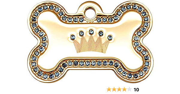 Gold Swarovski Blue Crown Large ID Tag cat name tags amazon