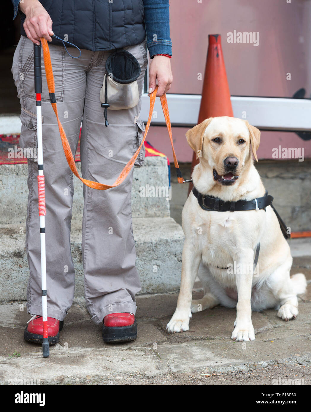 her golden retriever guide dog during blind golden retriever seeing eye dog