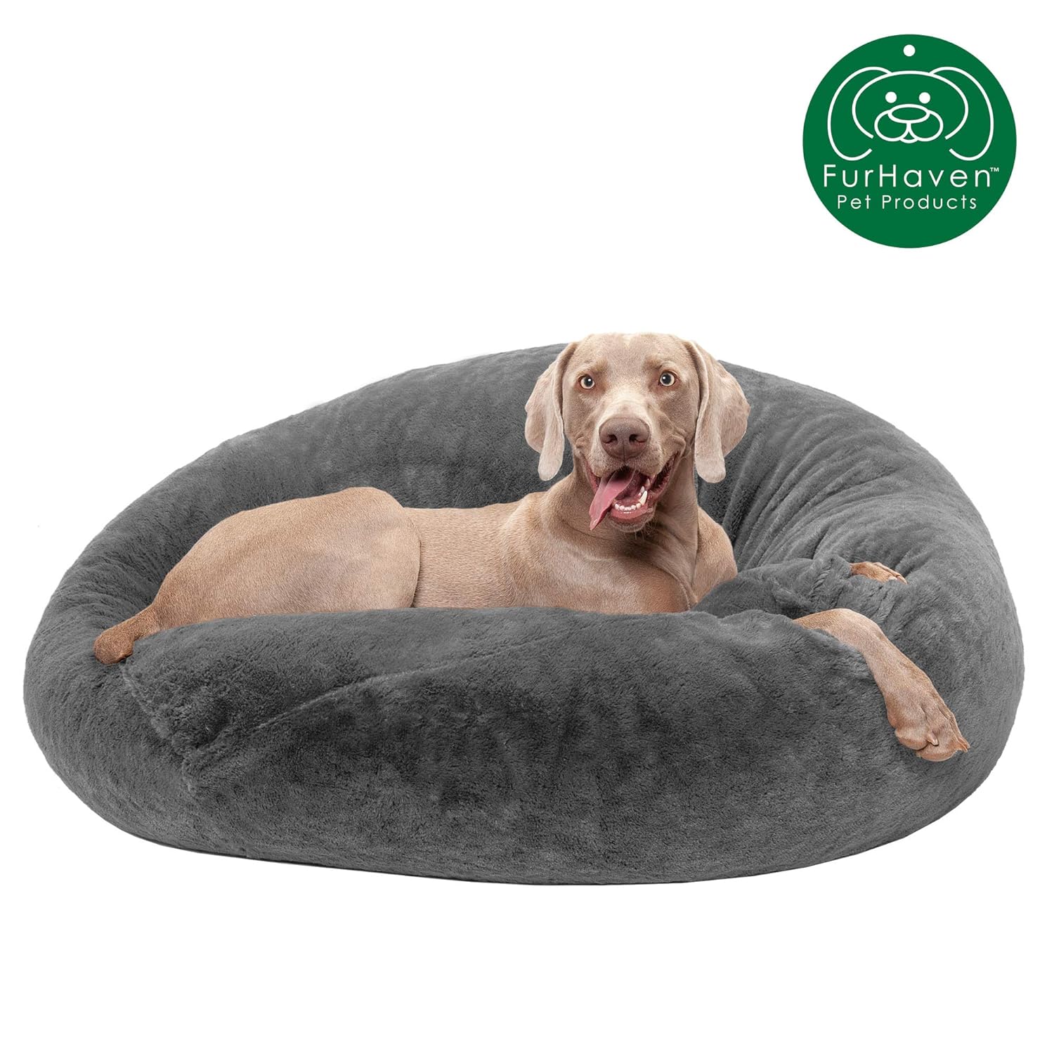Furhaven Pet Dog Bed | Round Plush Faux dog bed chaise lounge