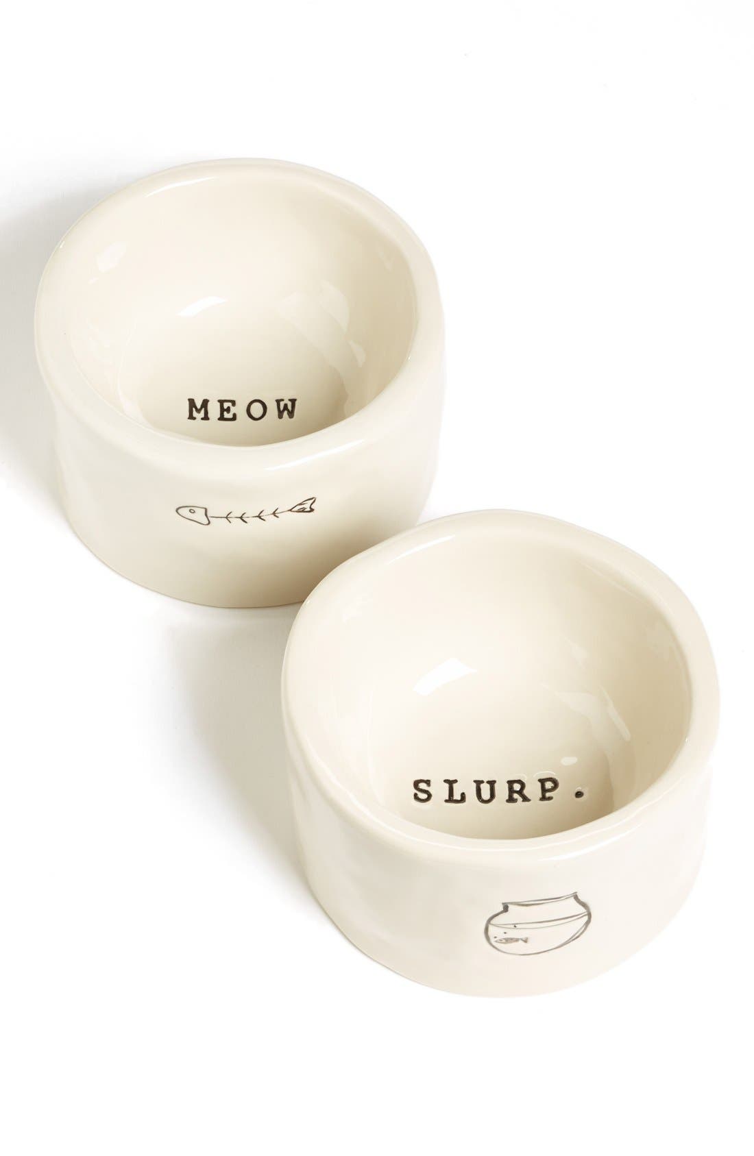 Rae Dunn 'Slurp/Meow' Ceramic Cat Bowls rae dunn meow bowl