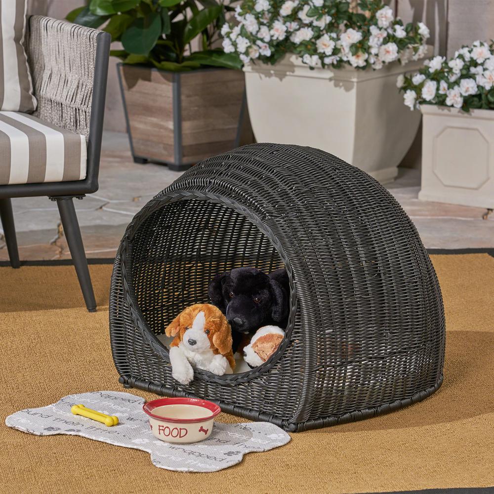 Noble House Rocky Black Wicker Igloo wicker outdoor dog bed