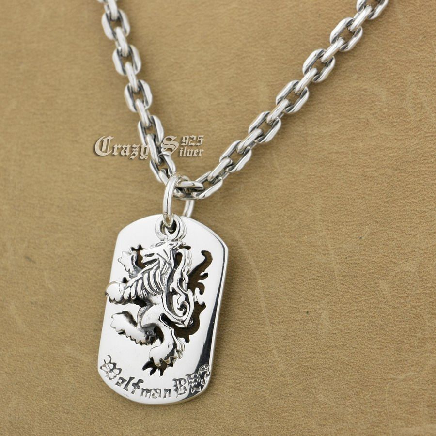 Wholesale 925 Sterling Silver King Lion silver necklace dog tag