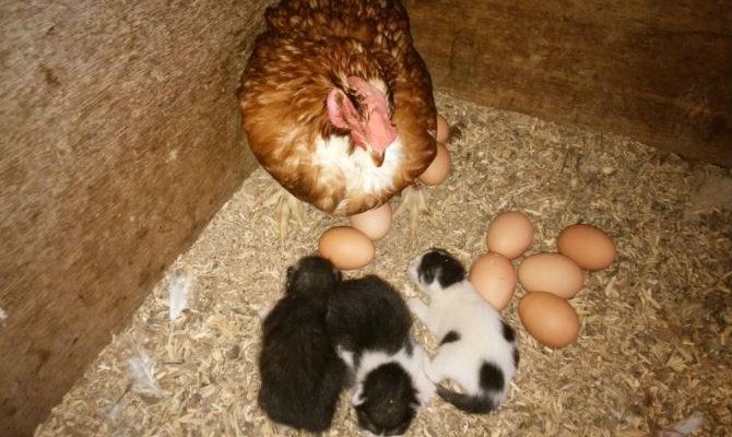 Farmer Finds Hens Raising Litter of Kittens chicken for kittens