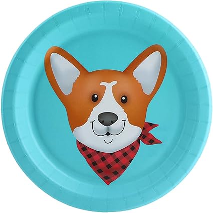 BirthdayExpress Puppy Dog Paw-ty Blue corgi plates