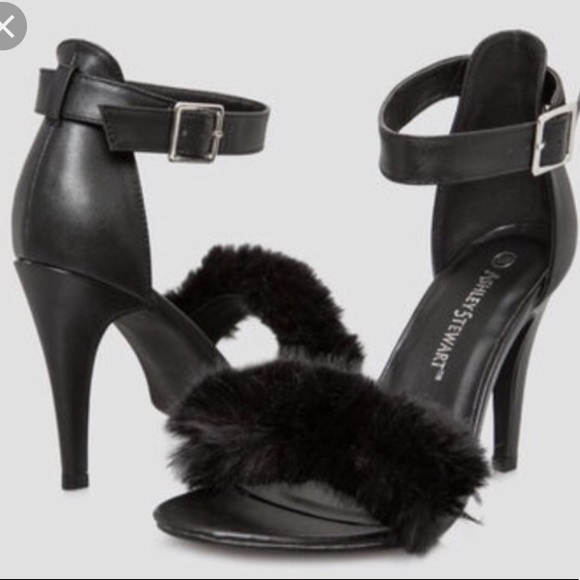 black fur strap heels