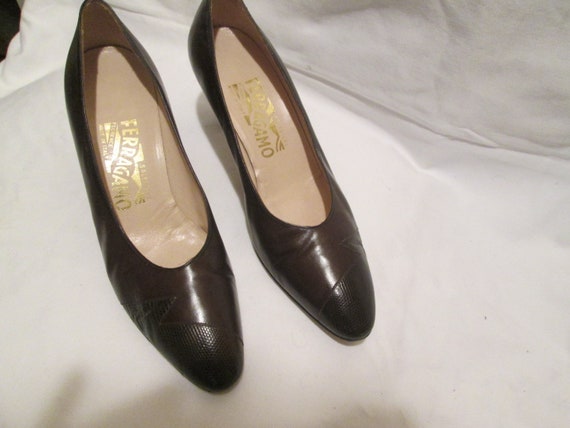 FINAL SALE Brown Leather/Lizard ferragamo pumps sale