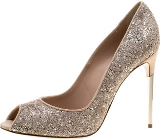 silver glitter peep toe heels by Jimmy Choo glitter peep toe heels
