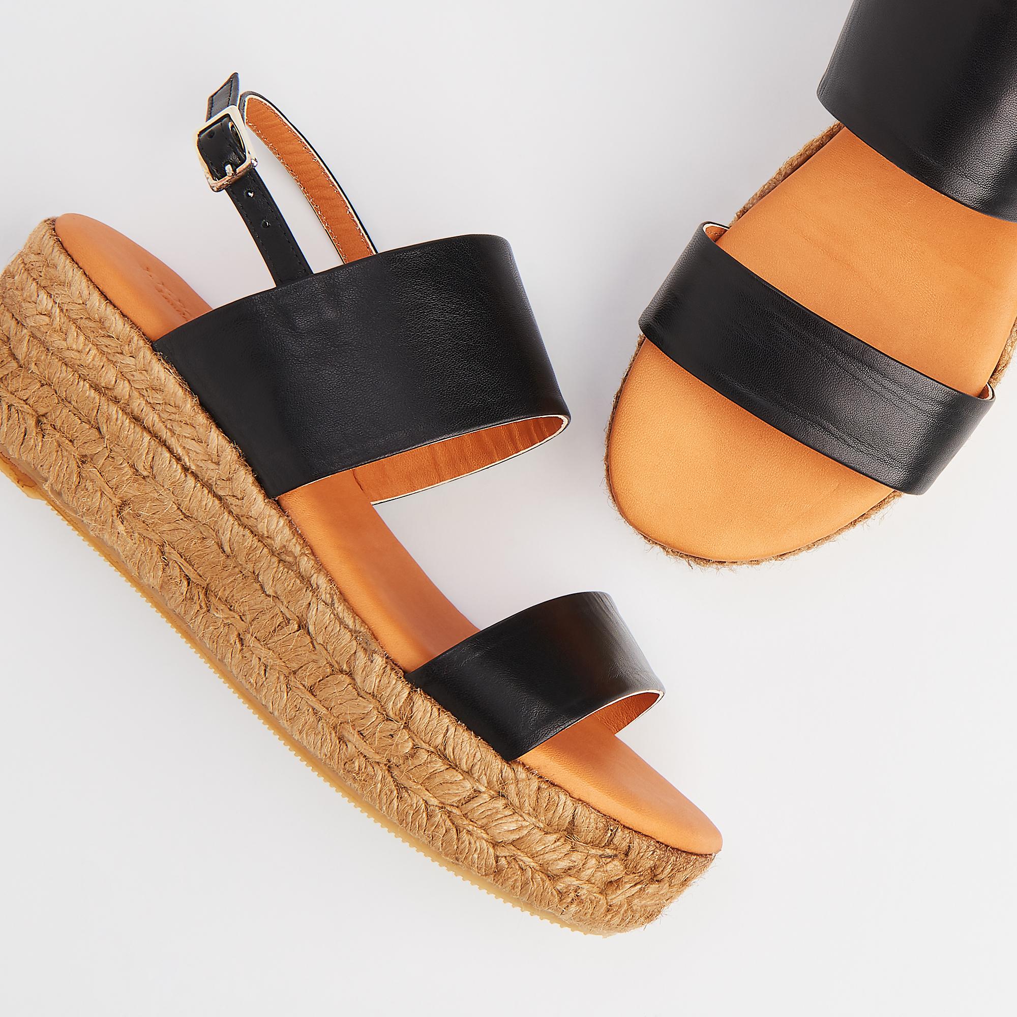 black leather espadrille sandals