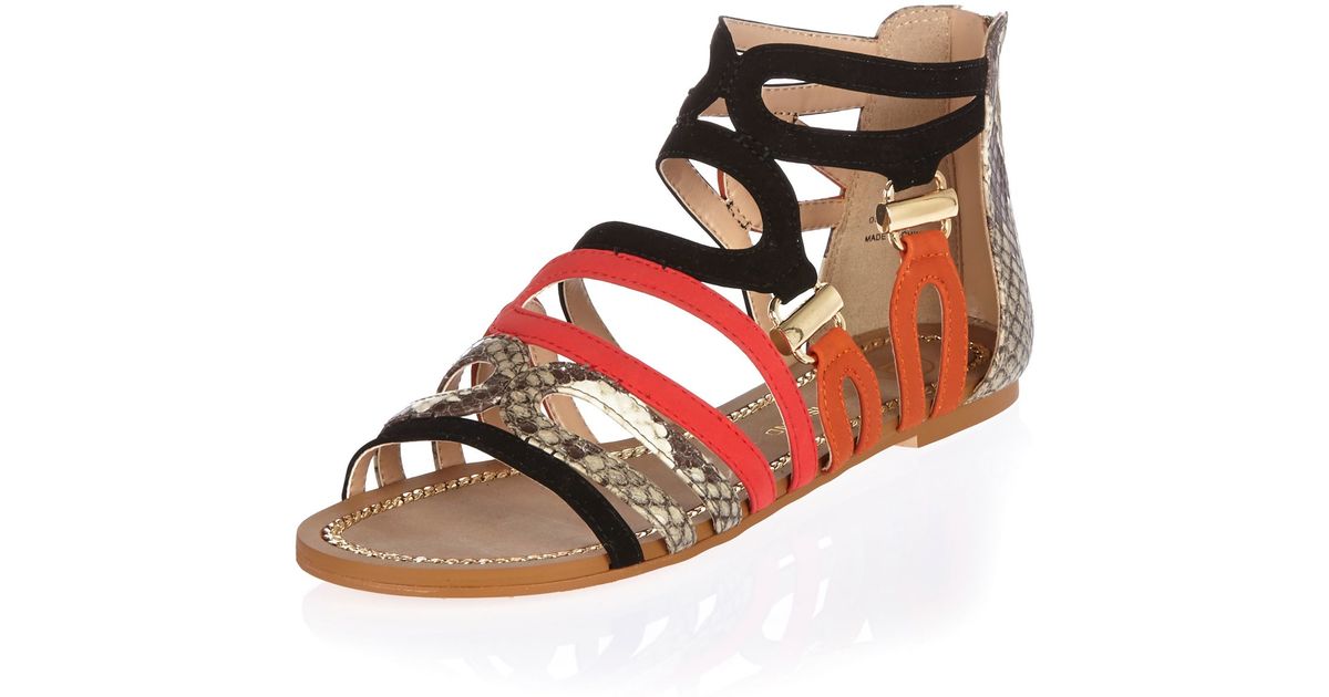 River Island Suede Black And Snakeskin river island flat sandals