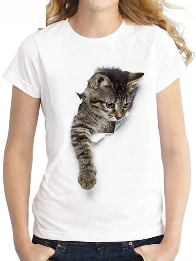 Short Sleeve Abstract Cat Printed Cute cute casual tops