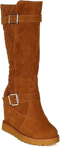 Amazon.com | Nature Breeze Women Suede tall leather wedge boots