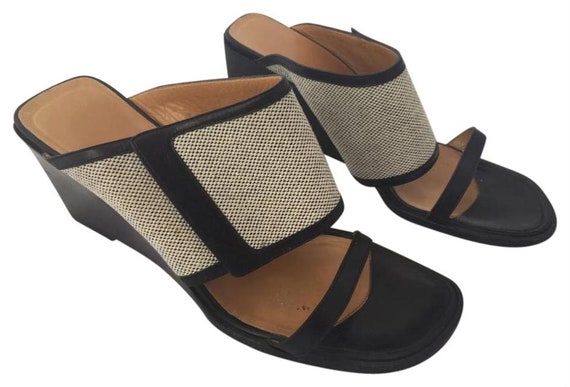 HERMES Wedges Sandals Black and Beige hermes wedges