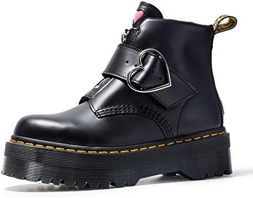 Sasecht Leather Heart Martin Boots Slip platform buckle boots