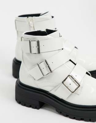 ASOS DESIGN Wide Fit Awaken biker boots wide fit white boots