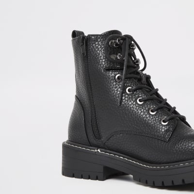 Black chunky wide fit lace-up hiking river island hiking boots